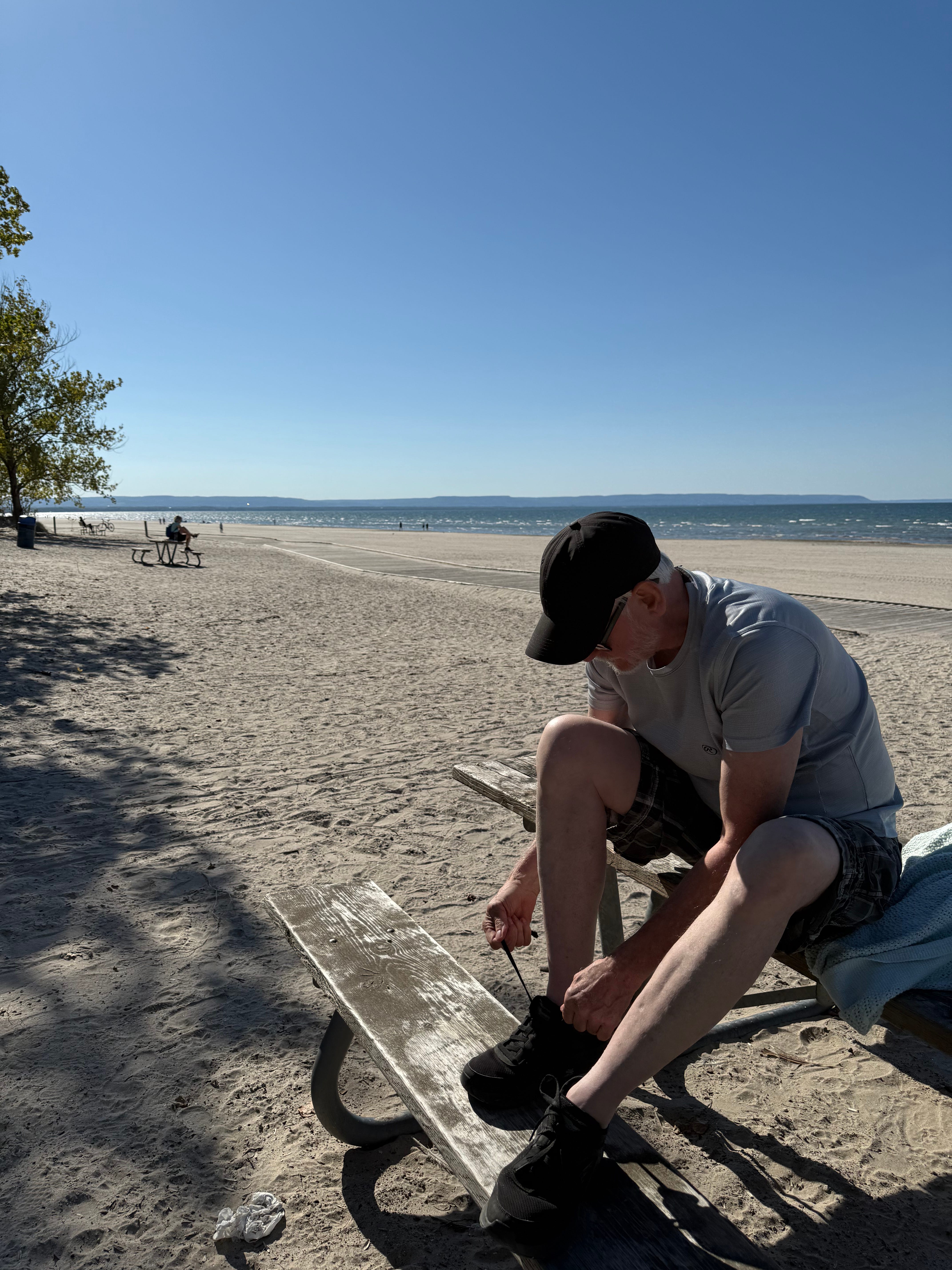On the day I visited, I sat near a man lacing up his shoes at a picnic bench. A simple moment, one that happens every day on every beach: stretching out, shaking off sand, getting ready to leave.